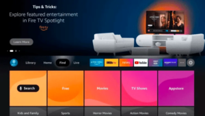 Step 2: From the home screen of FireStick, click on “Find” and then select “Search” option.